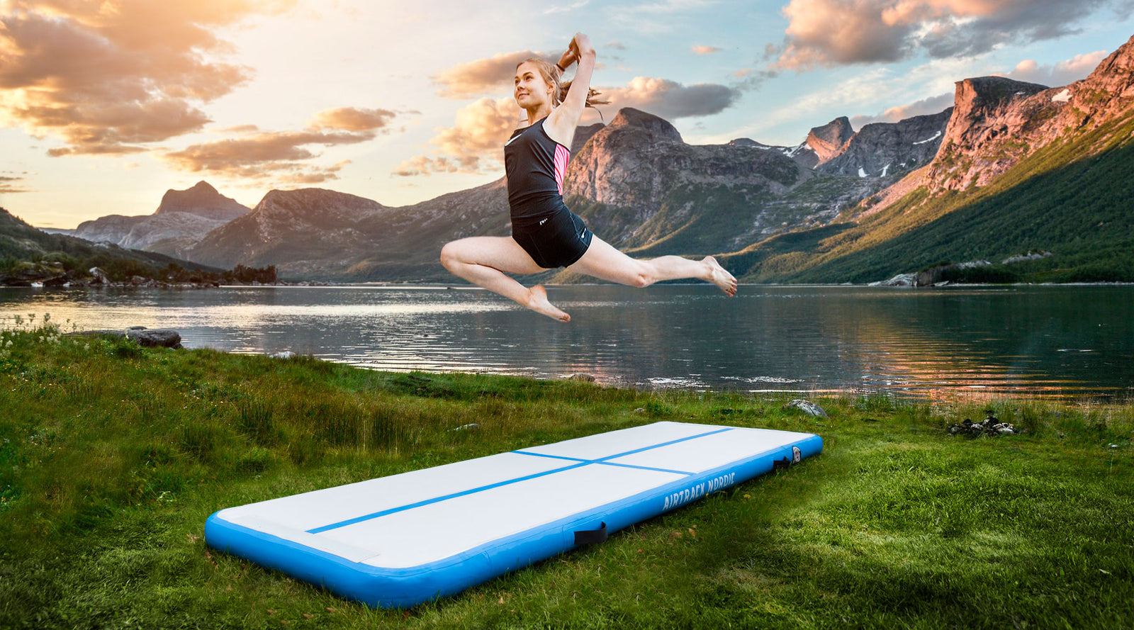 Air Track is an air filled gymnastics and tumbling mat for indoor and outdoor use. An Air Track resembles the flexible floor used in gymnastics and it can be used for gymnastics, cheerleading, parkour, tricking and all kinds of jumps and flips. The Air Track softens the landing and allows for higher jumps. It reduces the noise from the bounce and the surface material prevents slippage.